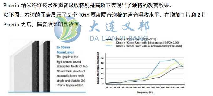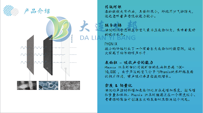 Phonix 優勢在輕和薄,它由靜電紡絲工藝生成,為聲波的吸收提供了更大的表面積,Phonix 具有獨特的改善非紡織物、纖維和隔音泡棉的聲音效果的能力。