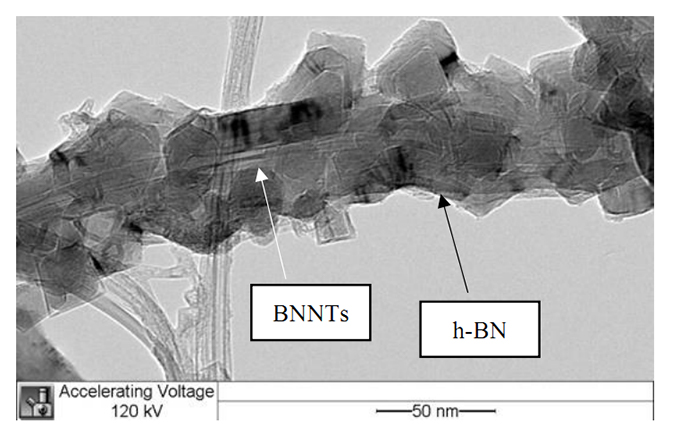 該材料由大連義邦和UNIQE公司聯合引入,材料制造商是全球為數不多的可以工業化生產氮化硼納米管的生產廠商,他們采用無催化劑、專利技術進行生產。與傳統氮化硼納米管不同的是,在納米管的外表形成了不規則的六方氮化硼結晶體。這種結構最顯著的優勢是在與基體材料混合時,優化氮化硼納米管顆粒與基體材料之間的交聯,從而增強復合材料的機械性能。