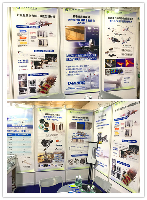 三天的展覽會,吸引了來自航空、航天、汽車、高速列車、船舶、能源、電子、基礎設施等領域的應用單位、大學、科研院所10000余人次參觀展覽會,DEXMET精密延展金屬網作為復合材料機體部件防雷知名產品已被客戶熟知,其中防除冰和輕量化整艙屏蔽方案得到眾多院所和軍工單位項目咨詢。對金屬化的PBO纖維絲,AW189/169直升機搭配的輕量高效內飾解決方案等所引入產品的先進性,給予了高度評價,日均接待客戶近百人次,留下合作意向項目信息90余份。