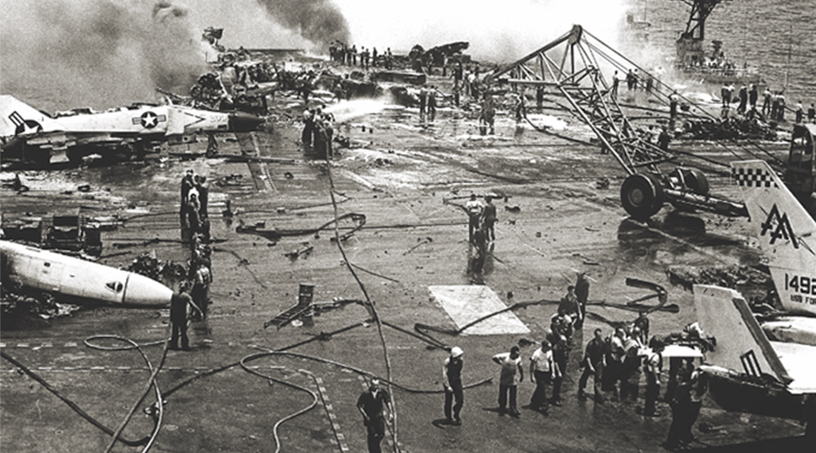 火災(zāi)一直是艦船的噩夢,不僅威脅到全體船員的安全,造成的連鎖反應(yīng)也是不可估量的。1951年-2008年美國航母發(fā)生火災(zāi)共計(jì)18次,最著名的是1967年福雷斯特號航空母艦的大火,其中有134名水手死亡,另有161人受傷。美國小鷹號航空1968年機(jī)庫外的儲藏室曾經(jīng)發(fā)生過火災(zāi),1969年美國企業(yè)號核動(dòng)力航母、福萊斯特號發(fā)生火災(zāi),1994年核動(dòng)力航母喬治華盛頓號同樣也應(yīng)為火災(zāi)引起了相當(dāng)嚴(yán)重的事故。2008年再次因火災(zāi)損失高達(dá)7000萬美元等。
