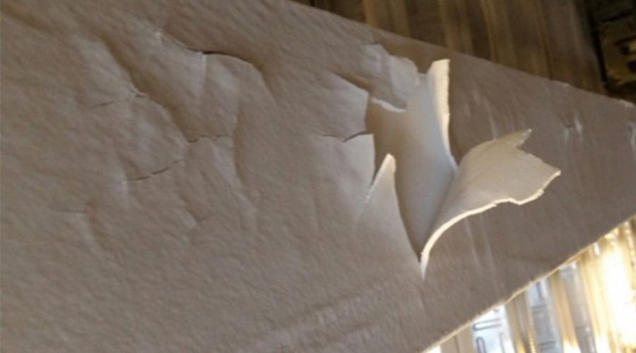 這個防火涂料的分層現(xiàn)象表明,低附著力防火涂層會導致粘合失效,從圖片可以看到它們已經(jīng)開裂