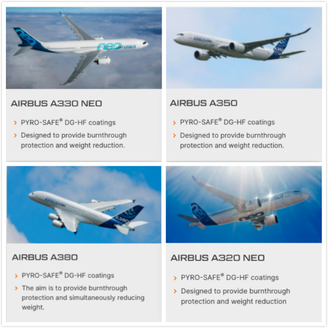 大連義邦的SVT可膨脹石墨型防火涂料,是空客認證防火涂料,并應用于以上機型