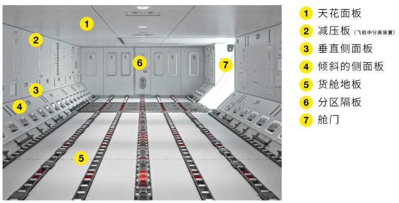 連同它們的緊固件、二級結構和貨艙門,這些面板構成了貨艙襯里的襯里。要求該內襯具有氣密性和防火兩種防火功能。